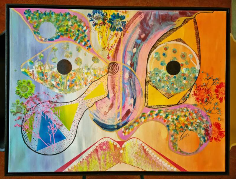 I watched a lot of “Antiques Roadshow”-type episodes while recovering and began sketching masks with spiritual symbolism. Questions ran through me: why did some staff seem less engaged when no doctor was present? And in love—what masks do we wear, and why?