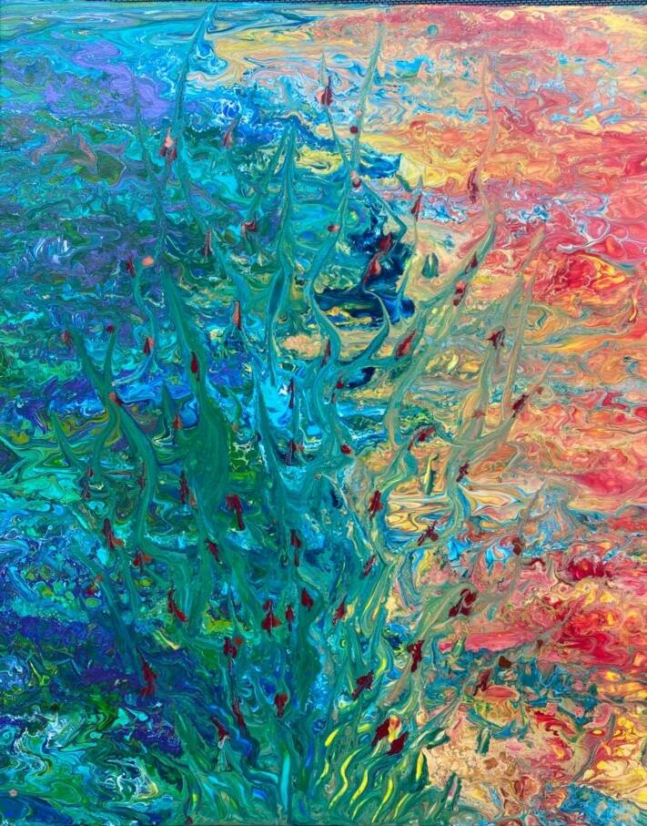 The painting seems still, yet those who look closely will see motion — a slow breath beneath the surface.