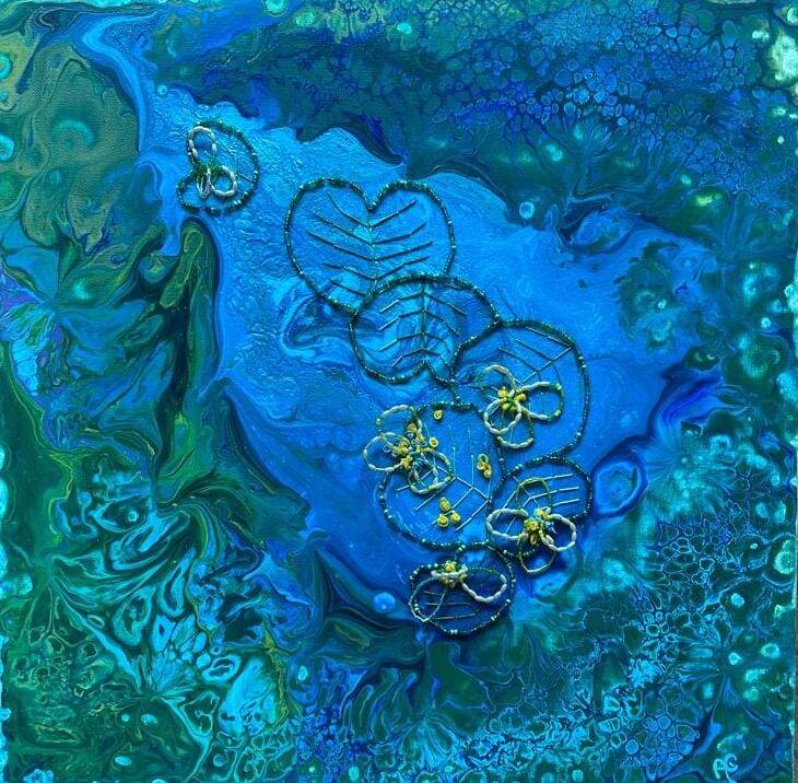 Ranunculus Pond = 3D - Acryl - kralen - 50cmx 50cm